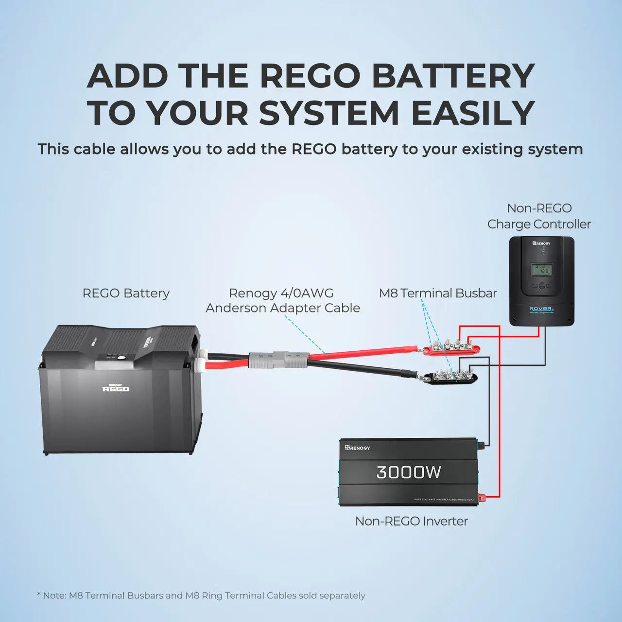 【Specially Designed to Work with REGO Products】 This Anderson Adapter Cable can be used to add the massive capacity of REGO 12V 400A lithium battery to your existing system, or connect the REGO inverter charger with the system combiner easily.