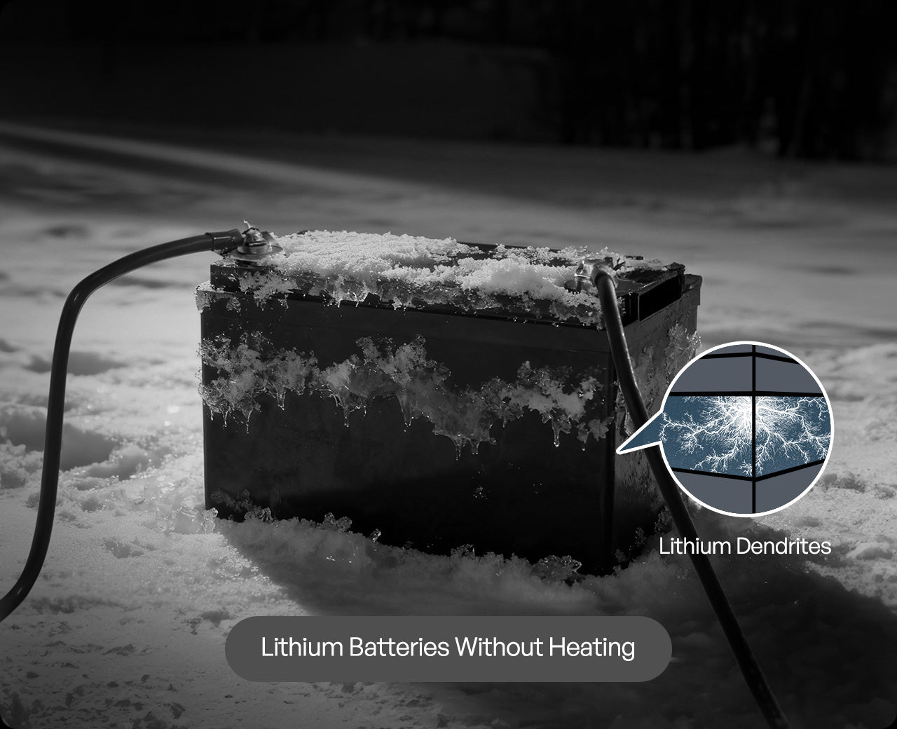 Keep your adventures going with self-heating batteries built to withstand harsh winter conditions.