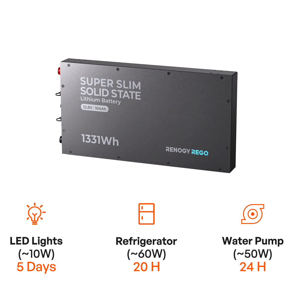 REGO - 12V 104Ah Super Slim Solid State Lithium Iron Phosphate Battery - 🔥2 Pack