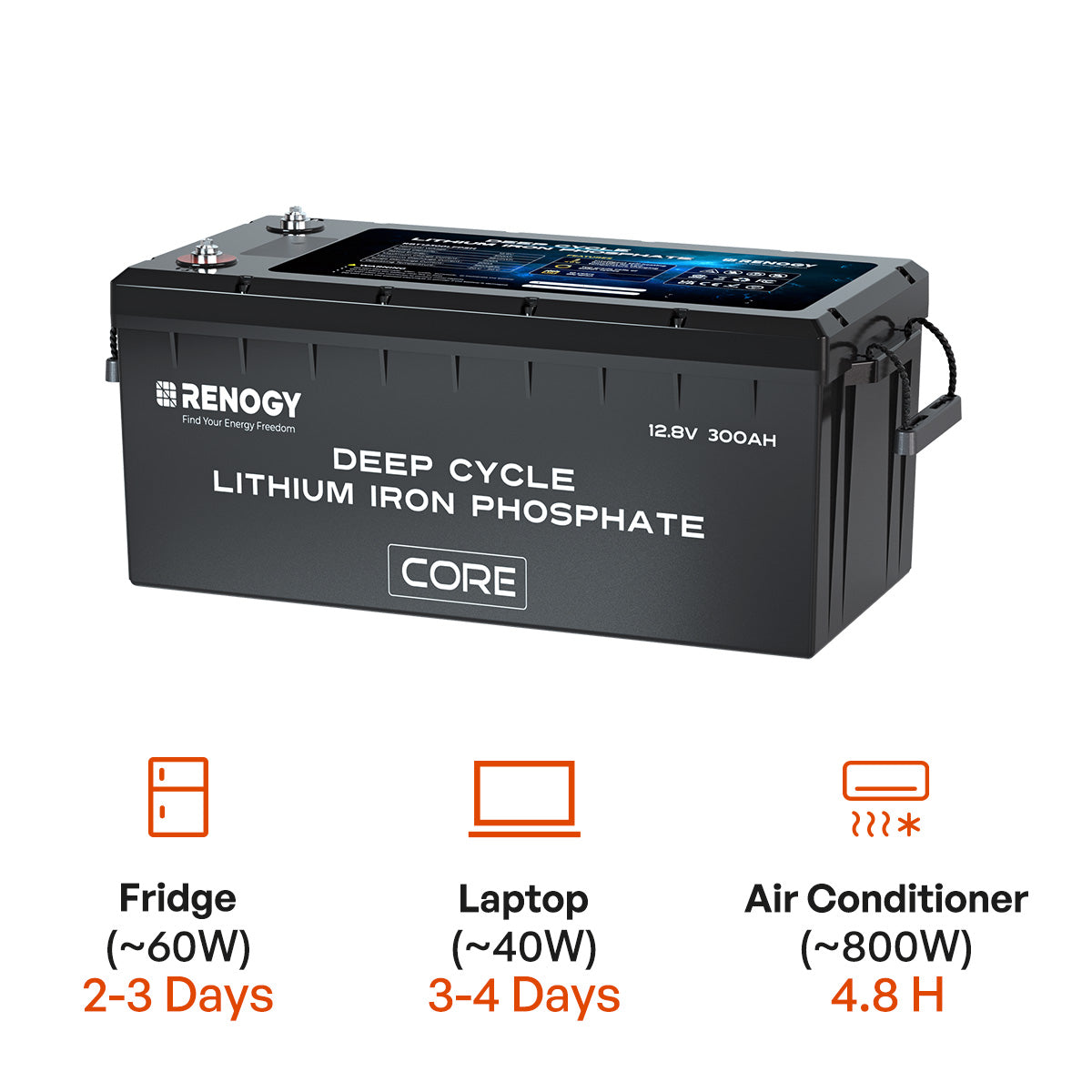 Core - Renogy 12V 300Ah Deep Cycle Lithium Iron Phosphate Battery w/Self-Heating