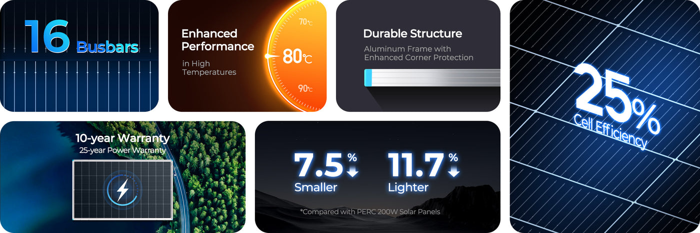 ShadowFlux features a high open-circuit voltage (36.5V) and is compatible with both 12V and 24V battery systems.