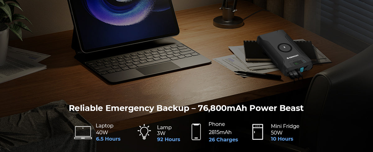 The RENOGY power bank brick supports charging up to 6 devices simultaneously. With its massive 76,800mAh capacity, it's perfect for powering phones, tablets, USB lights, or fans outdoors for extended periods.