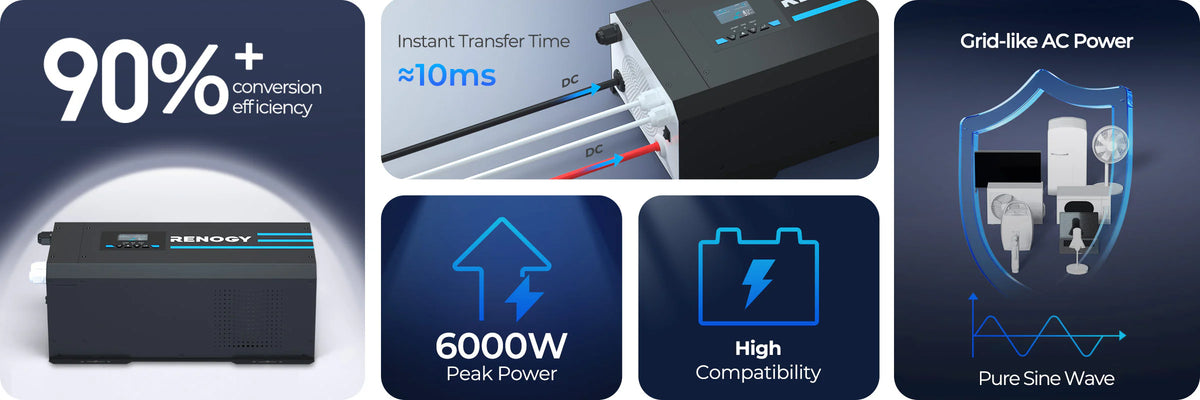 2000W 12V Pure Sine Wave Inverter Charger w/ LCD Display