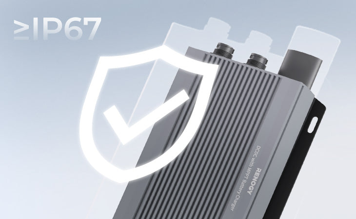 The IP67 Battery Charger harnesses both solar and generator power, offering a dual charging solution with 12V/24V boost and buck logic.