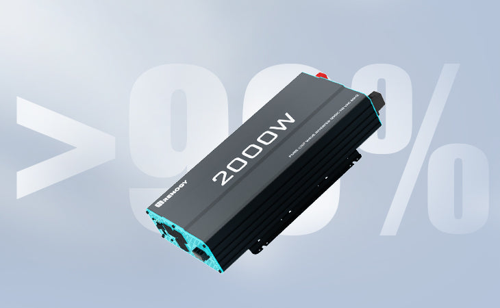 2000W 12V Pure Sine Wave Inverter exceeds 90% conversion efficiency with a peak surge of 4000W.