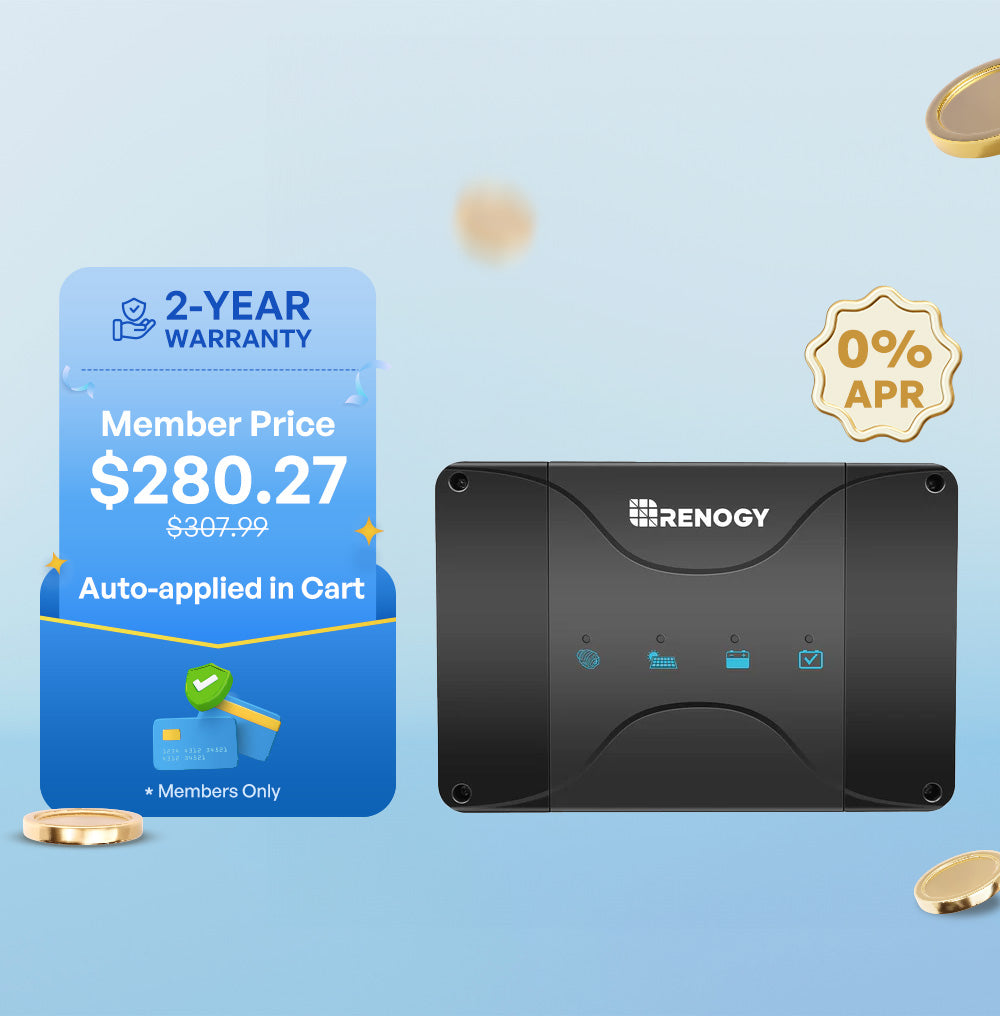 The all-in-one NEG-terminal design consolidates connections for the solar panel array, starter battery, and house battery, optimizing installation space and simplifying setup.