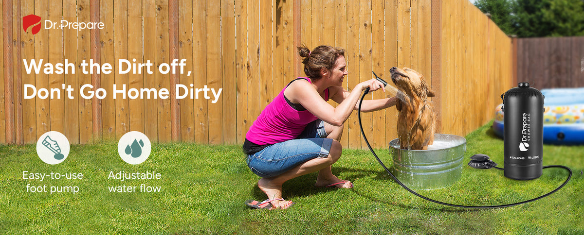Dr.Prepare 15L Portable Camping Shower Kit with Foot Pump is backordered and will ship as soon as it is back in stock.