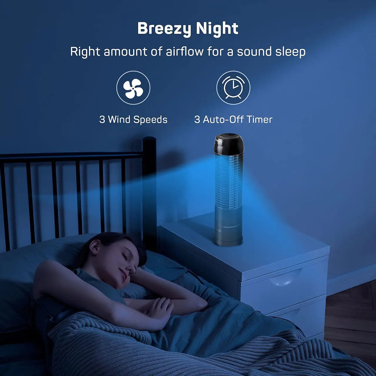 • ?€?Customized Speeds & Timer?€?The tower fan boasts 3 adjustable speed settings to allow you to have easy control of wind for the tailored cooling experience. With the auto-off timer feature, the oscillating fan can be set run from 1 to 3 hours, you can free adjust the cooling time for a good night’s sleep.