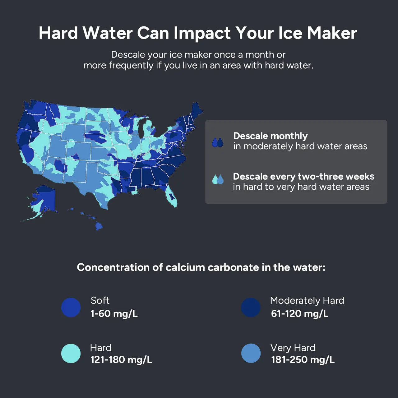 To keep your nugget ice looking good and tasting fresh and to remove the scale build-up, it is recommended to run the self-cleaning function once a month. If you live in an area with hard water, twice a month or more.