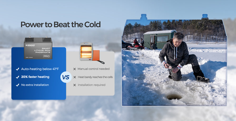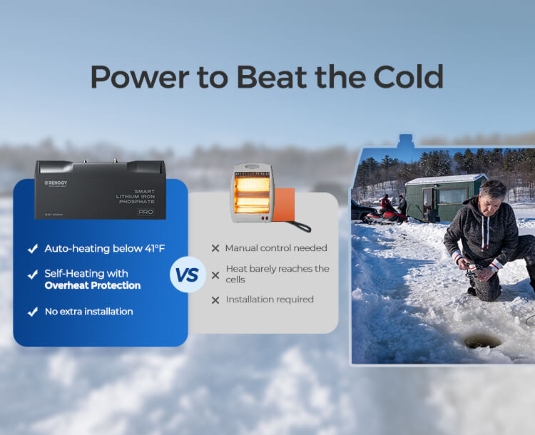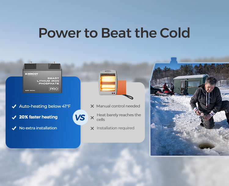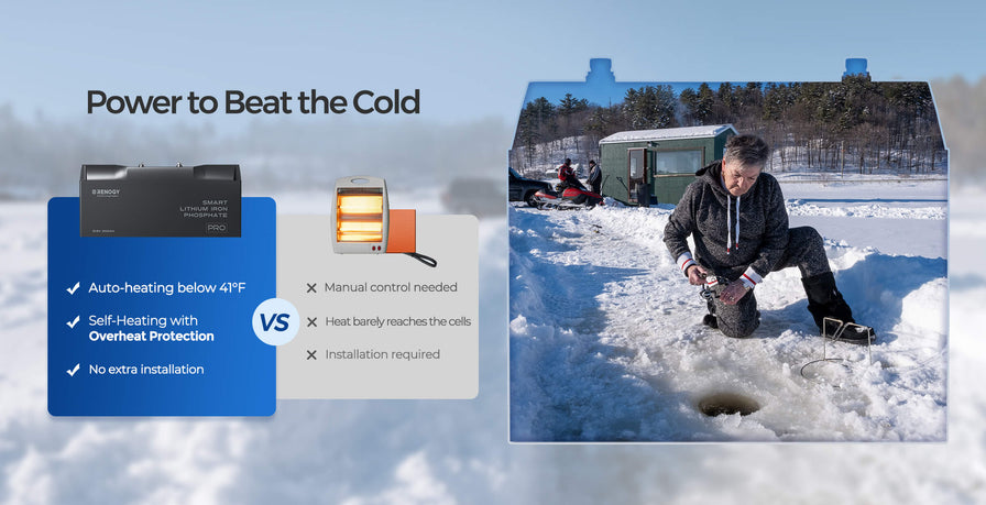 For winter sports enthusiasts, like ice fishing, a self-heating LiFePO4 battery is essential. The 12V 100Ah Pro LiFePO4 battery can automatically heat up with a charging current greater than 4A, ensuring safe charging in sub-zero temperatures and providing reliable power for fish finders and other gear.
