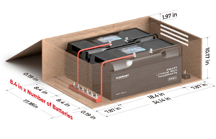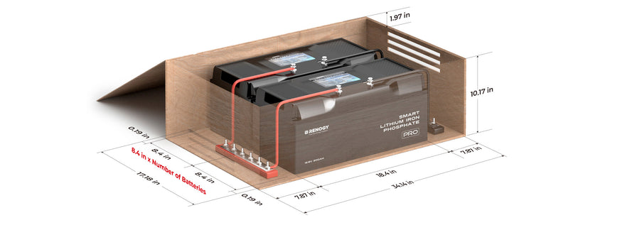 Before installing the battery, please note that you need to leave 1.97-3.94 in (50-100 mm) for the top of the battery; the side with busbars needs to be left at least 7.87 in (200 mm).