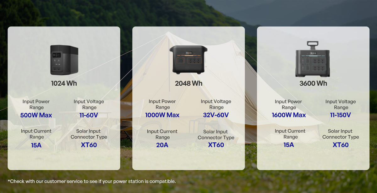 Seamless integration with most power station brands, or simply add an adapter cable for charging.