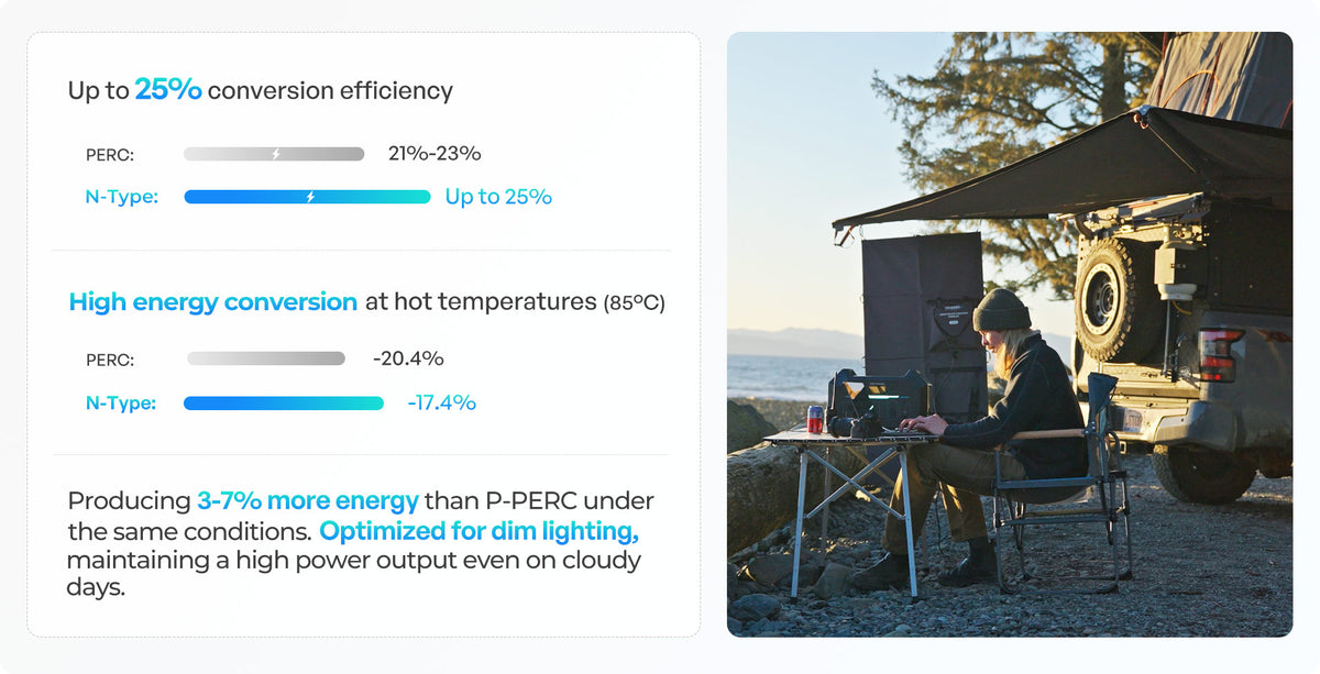 Advanced N-Type tech boost cell efficiency by 25% and generate 3–7% more energy than PERC under the same conditions