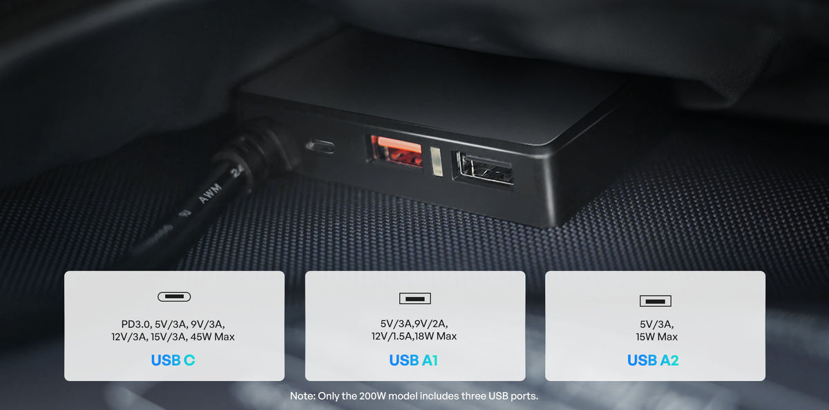 Only the 200W solar blanket features a built-in USB output port for directly charging small devices like phones and tablets.