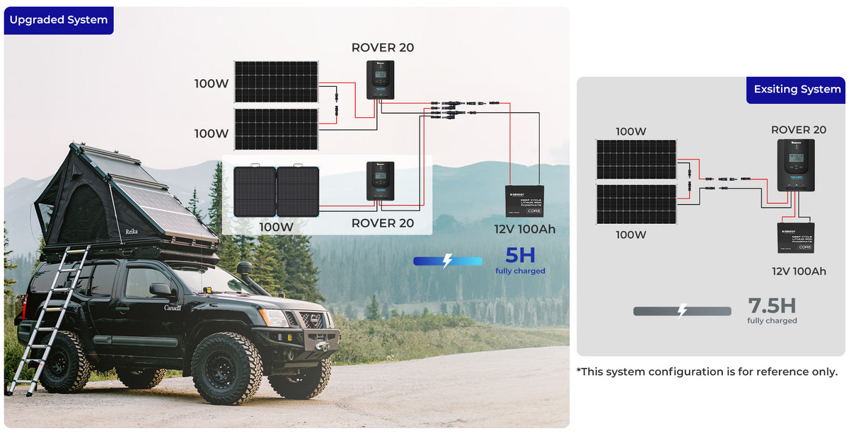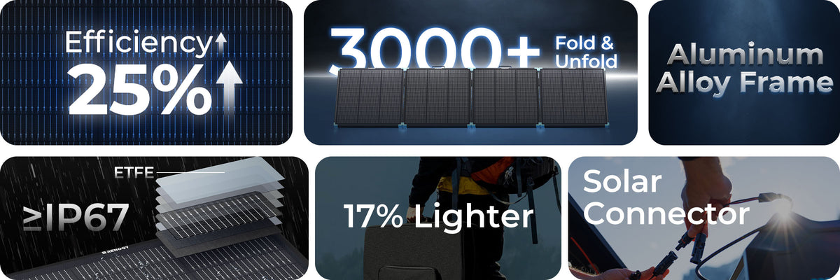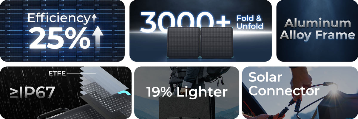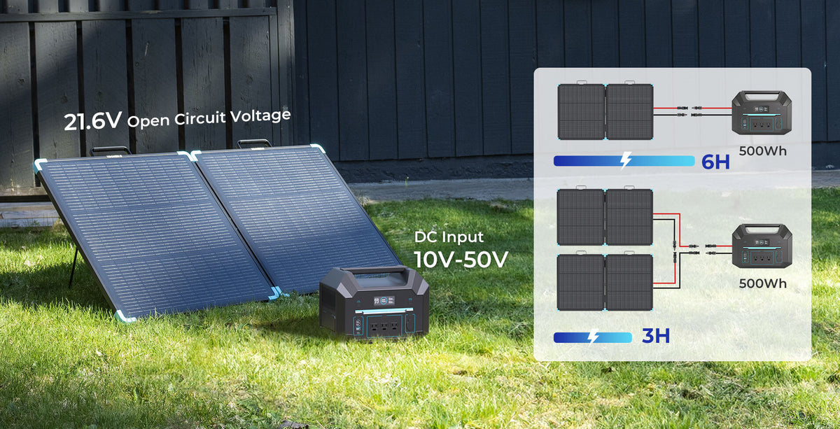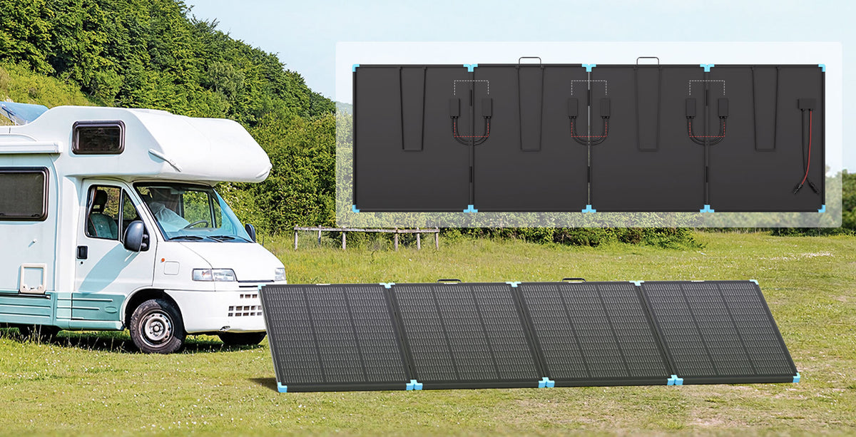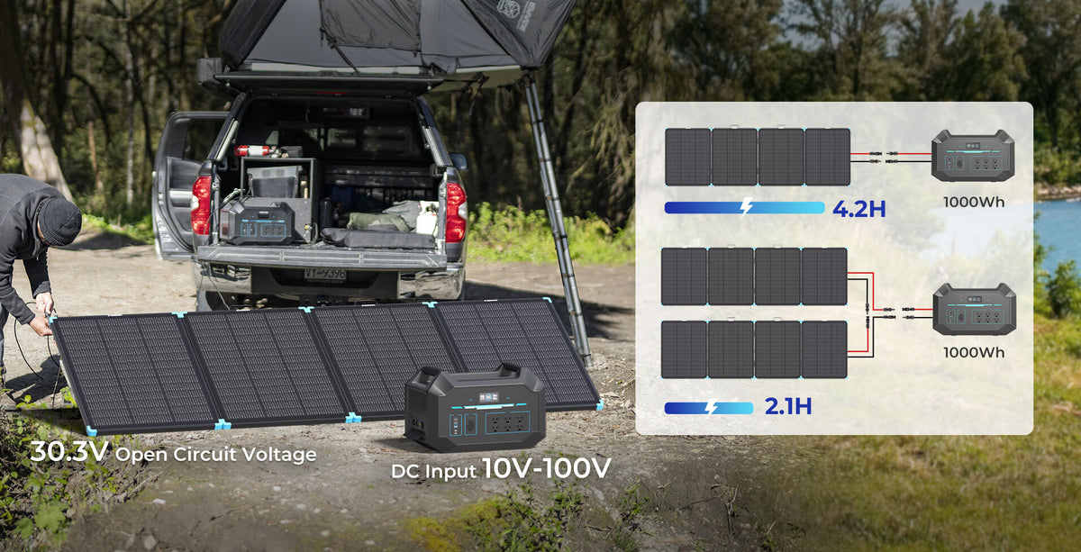 Parallel two panels to boost power and charge faster in high-demand outdoor scenarios.
